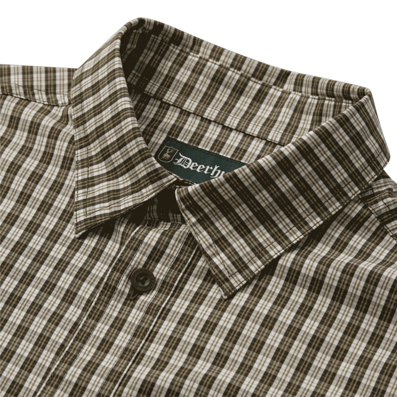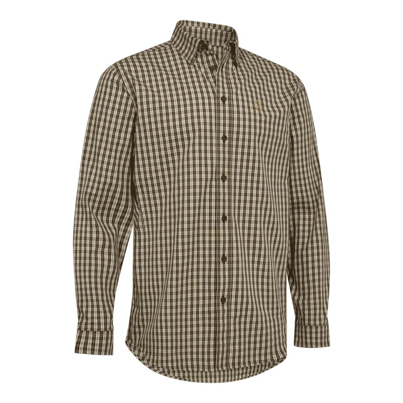 Chaque détail de la Baldwin est pensé pour l'élégance et la fonctionnalité. Son col à boutons cachés (hidden button-down) assure un maintien impeccable et une allure soignée, même en mouvement ou sous un pull. Pour ne jamais entraver le geste, des plis d'aisance au dos ont été intégrés, offrant une amplitude de mouvement indispensable lors de l'observation ou du tir. Un logo Deerhunter brodé avec finesse sur la poitrine vient parfaire cette chemise, signant l'appartenance à une lignée d'équipementiers reconnus pour leur robustesse.