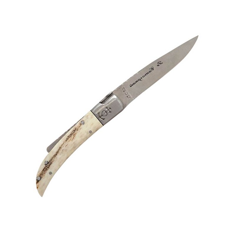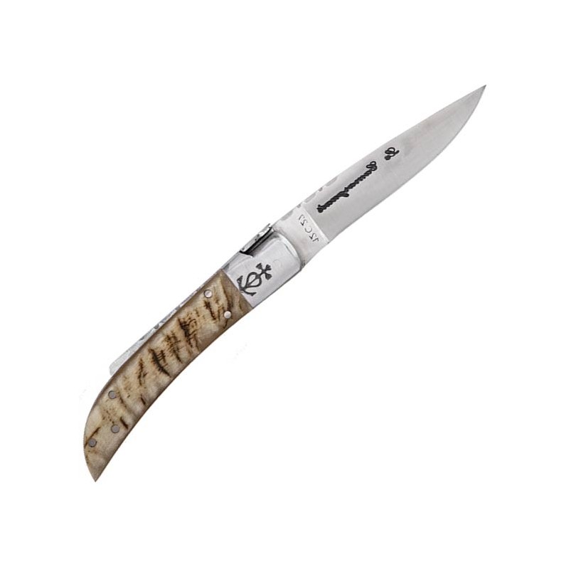 Ce couteau d'exception représente le sommet du savoir-faire artisanal, conçu pour les chasseurs en quête d'une pièce de coutellerie à la fois noble et indestructible. Sa lame de 90 mm est forgée en acier 12C27, garantissant un tranchant rasoir durable et une résistance à la corrosion indispensable en milieu naturel. Le profil Drop Point assure une polyvalence totale pour le petit gibier ou les travaux de précision au poste. Contrairement aux modèles standards, cette version arbore un Trident forgé directement dans la masse du ressort, offrant une solidité structurelle et une esthétique authentique que seul le travail de forge permet d'obtenir. Le manche en olivier véritable complète cet ensemble avec son veinage unique et sa prise en main naturelle.