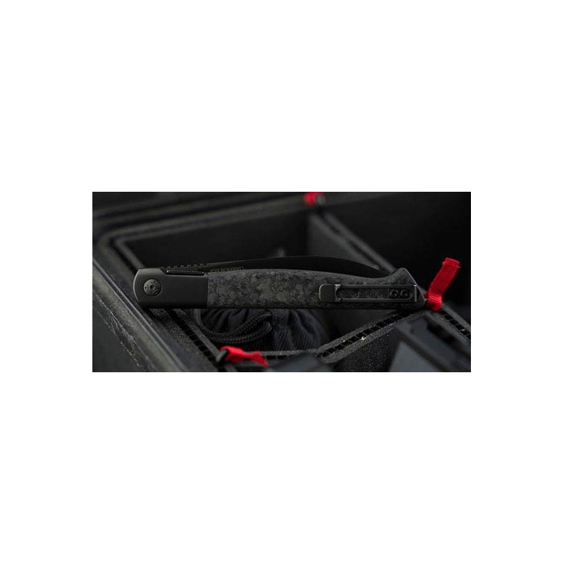 La lame de 76mm adopte un profil Hawkbill (en forme de griffe) redoutable, idéal pour les coupes par traction, le travail des cordages ou l'ouverture de colis avec une précision chirurgicale. Pour garantir une légèreté absolue sans sacrifier la rigidité, le manche bénéficie d'une finition en fibre de carbone, offrant des reflets noir/gris sophistiqués et une ergonomie parfaitement équilibrée. Avec une longueur totale de 203mm et son clip de poche, cet instrument de haute technologie de couleur noire s'impose comme un standard de distinction pour les amateurs de coutellerie d'avant-garde.