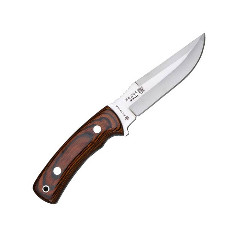 La noblesse des matériaux naturels et l'excellence de la forge espagnole se rencontrent dans le Joker Gamo, un couteau de chasse de prestige conçu pour les passionnés de plein air et les collectionneurs exigeants. Forgé dans un acier Molybdène Vanadium — un alliage réputé pour son équilibre parfait entre dureté, résistance à l'usure et facilité d'affûtage sur le terrain — ce modèle se distingue par sa conception Lame Full Tang (pleine soie) qui lui confère une robustesse monolithique. Sa structure fixe avec demi-garde assure une protection efficace des doigts, en faisant un choix stratégique pour le dépeçage, le travail du bois ou la vie de camp.