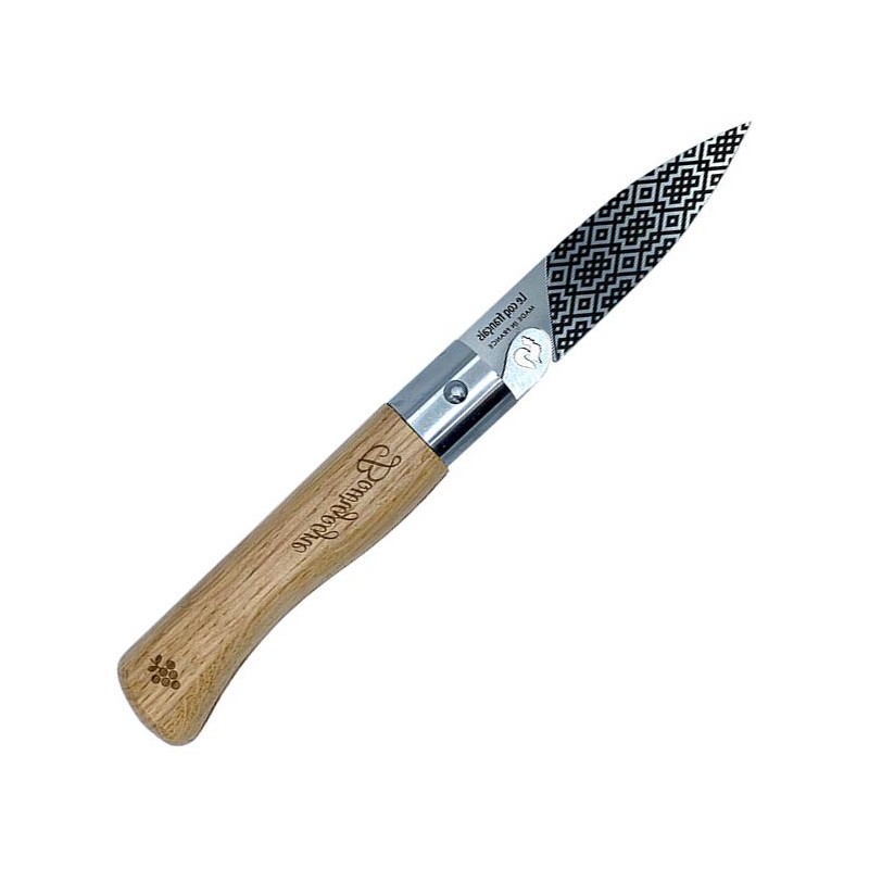 Conseil de nos experts : Le Coq Bourguignon est le compagnon indispensable d'un mâchon ou d'un pique-nique au cœur des vignes ; l'acier Z40C13 est particulièrement hygiénique pour un usage alimentaire. Pour conserver la beauté du manche en chêne, évitez le passage sous l'eau et privilégiez un nettoyage de la lame au chiffon humide.