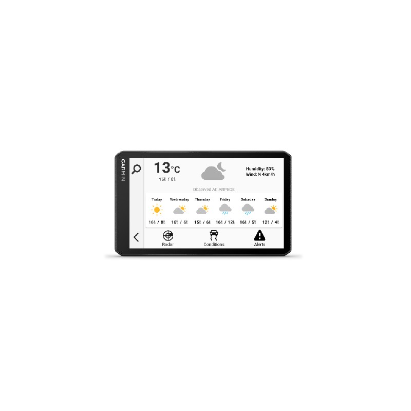 APPLICATION GARMIN DRIVE : Se couple avec l'application mobile Garmin Drive™ sur votre smartphone compatible pour afficher les conditions météo actuelles, les Smart Notifications et l'état du trafic