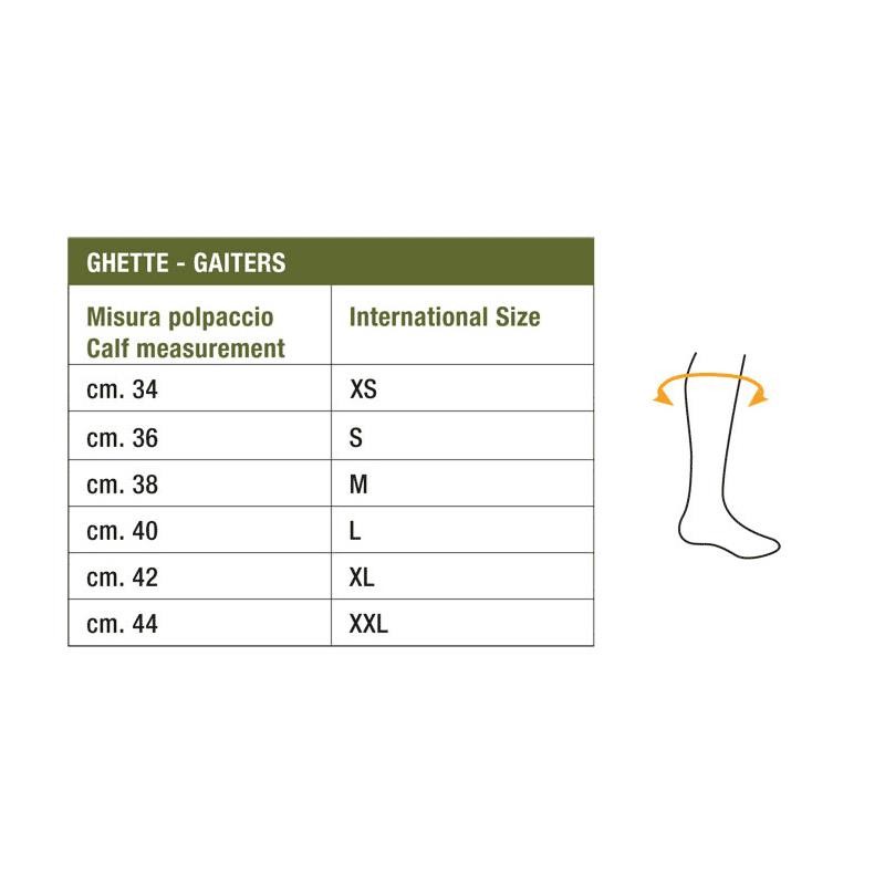 Guêtre confortable en Cordura naturelle doublée à l'intérieur, imperméable et aérée, avec double fermeture éclair antérieure (velcro et zip), avec un élastique au mollet et un renfort avant qui protège les tibias et équipée du brevet exclusif TRACTION SYSTEM qui présente de nombreux avantages:
