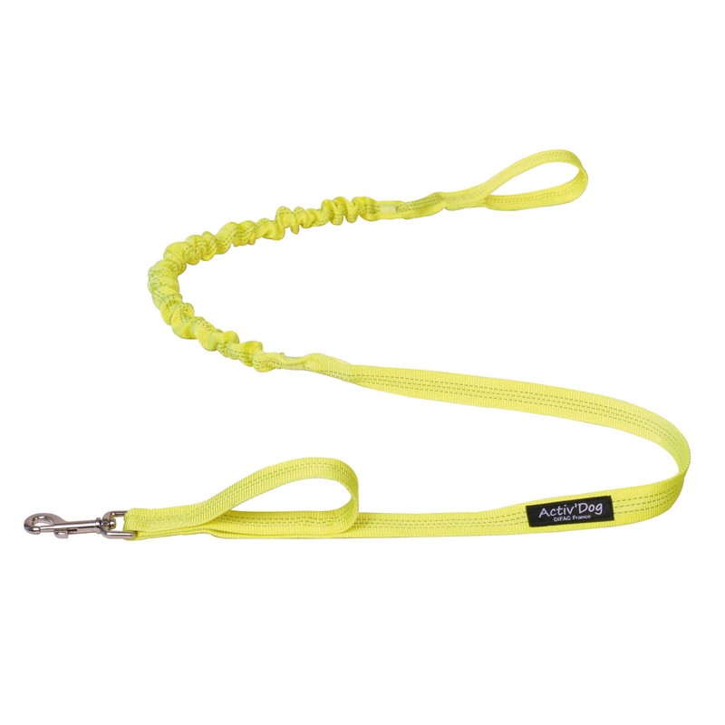 Fabriquée dans nos ateliers en sangle polyester tubulaire de haute résistance avec 3 fils fluorescents. Finitions haut de gamme et coutures renforcées. Système de fixation de l'élastique exclusif DIFAC. L'élastique est en effet maintenu par 2 nœuds intérieurs très discrets, bloqués par une couture d'arrêt qui ne blesse pas les fils élastiques ainsi que le fourreau. La longévité de l'élastique est par conséquent considérablement augmentée et la fixation absolument garantie. Poignée de contrôle coté chien. Fixation soit directement à la ceinture pour éviter tout poids supplémentaire ou pièce métallique entre le chien et le maître. Conforme au règlement de toutes les fédérations. Longueurs mini/maxi 1.45m/2m.