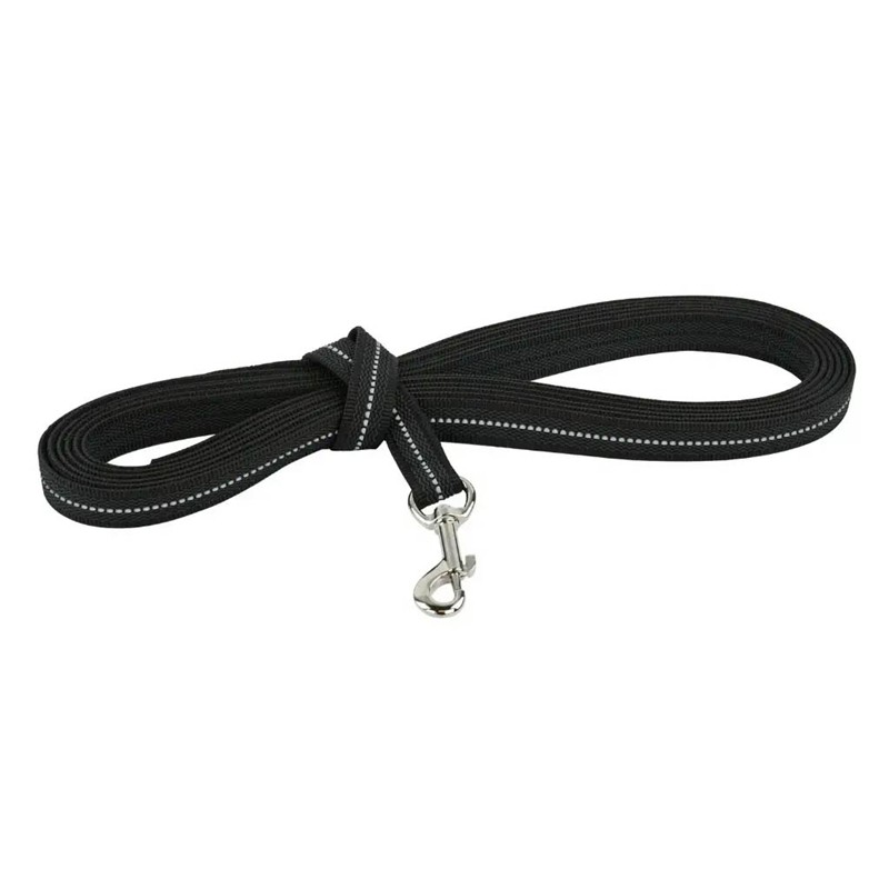 Cette longe de travail est l'instrument de prédilection pour le pistage, la recherche au sang ou l'éducation à distance. Sa conception repose sur une sangle technique intégrant un revêtement en gomme antidérapante sur les deux faces, assurant une adhérence parfaite même sous la pluie ou dans des environnements humides et boueux. La présence d'un fil réfléchissant tissé dans la masse garantit une visibilité accrue du conducteur et de l'animal, un atout de sécurité majeur lors des interventions par faible luminosité ou en lisière de route.