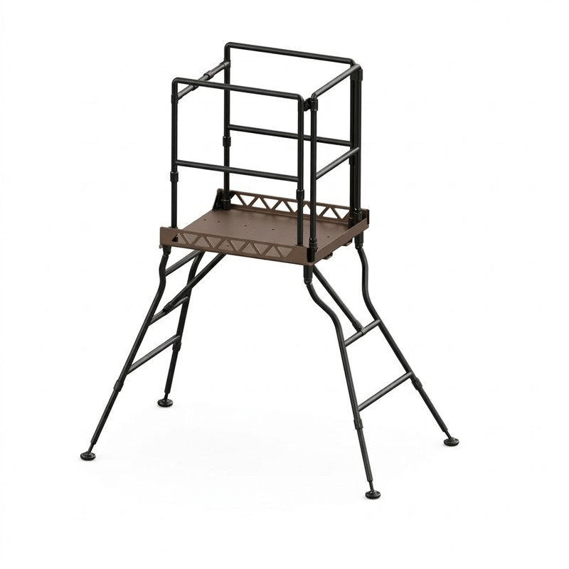 CONSEIL DE NOS EXPERTS : Pour une sécurité maximale, nous vous conseillons de toujours vérifier le verrouillage des pieds réglables avant de monter sur le plancher. Si vous chassez sur des zones de passage très fréquentées, l'option rehausse à 2 mètres est un vrai "plus" pour dominer la végétation haute et sécuriser davantage vos angles de tir.