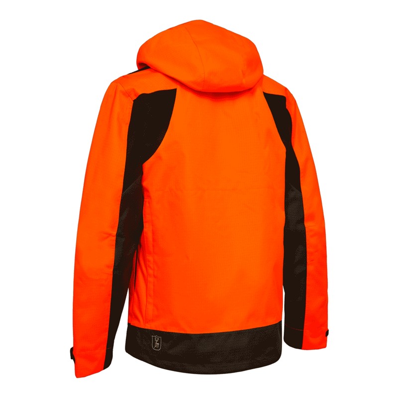 L'ingénierie de cette veste répond aux besoins spécifiques du terrain avec une précision chirurgicale. Les épaules reçoivent des renforts antidérapants pour sécuriser le port de la carabine, et des fermetures éclair de ventilation imperméables sont placées sur les côtés pour évacuer l'excès de chaleur lors de la traque. Côté rangement, la fonctionnalité est totale : deux grandes poches poitrine avec passage pour antenne radio, des poches avant avec porte-cartouches intégrés et un vaste carnier arrière accessible des deux côtés. La doublure en maille respirante et la capuche amovible complètent ce dispositif technique, faisant de cette veste un allié indispensable pour rester au sec, au chaud et parfaitement visible tout au long de la saison.