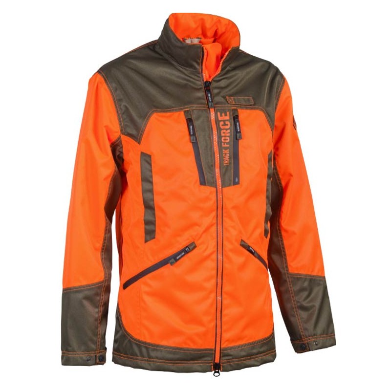 La Track Force a été pensée pour la durabilité. Son carnier enduit permet de transporter le gibier ou le matériel sans craindre les salissures, son nettoyage étant facilité par sa structure lavable. Le rubber patch Percussion sur la manche signe l'appartenance à une lignée de vêtements techniques reconnus pour leur robustesse face aux ronces et à la végétation dense.