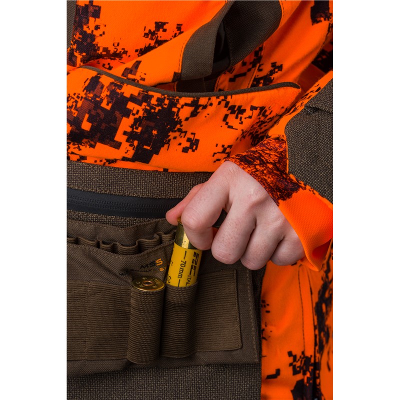 La veste Thermo-Hunt s'impose comme une pièce maîtresse pour le chasseur posté ou le traqueur recherchant une visibilité maximale alliée à une protection thermique supérieure. Ce modèle de nouvelle génération se distingue par son camouflage orange digital haute visibilité, conçu pour briser la silhouette humaine tout en restant parfaitement identifiable par les autres chasseurs. Sa structure technique intègre une membrane 10K/10K offrant une imperméabilité et une respirabilité de haut niveau, garantissant un maintien au sec même sous des pluies soutenues. Pour faire face aux milieux abrasifs, elle dispose d'empiècements stratégiques renforcés en Kevlar Stretch, offrant une résistance accrue aux ronces sans entraver la souplesse nécessaire lors de l'épaulement.