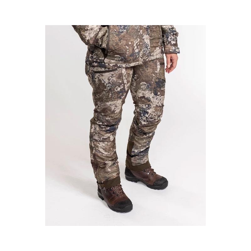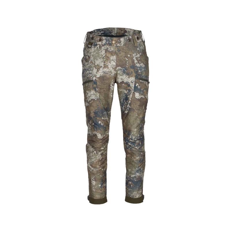 Wind- und wasserdichte Jagdhose mit Eigenschaften für die Herbstjagd. Die Hose ist weich und warm mit femininer Schnittführung, vorgeformten Knien und einem elastischen Bund mit beidseitig dehnbaren Einsätzen am Rücken. Der offizielle True Timber® Camou-Stoff ist langlebig und sehr atmungsaktiv. Lüftungsreißverschlüsse an den Seiten ermöglichen zusätzliche Luftzirkulation. Die Hose hat versiegelte Nähte und wurde mit der wasserabweisenden Behandlung BIONIC-FINISH® ECO für eine wasserdichte Wirkung versehen. Mehrere funktionale Taschen mit Reißverschlüssen und Patronenhalter, darunter eine kleine Tasche an der Wade mit integriertem Sicherheitsband. Beinabschluss verstellbar mit Reißverschlüssen, Schnallen und Klettverschluss. Hosenträgerbefestigungen an der Taille.