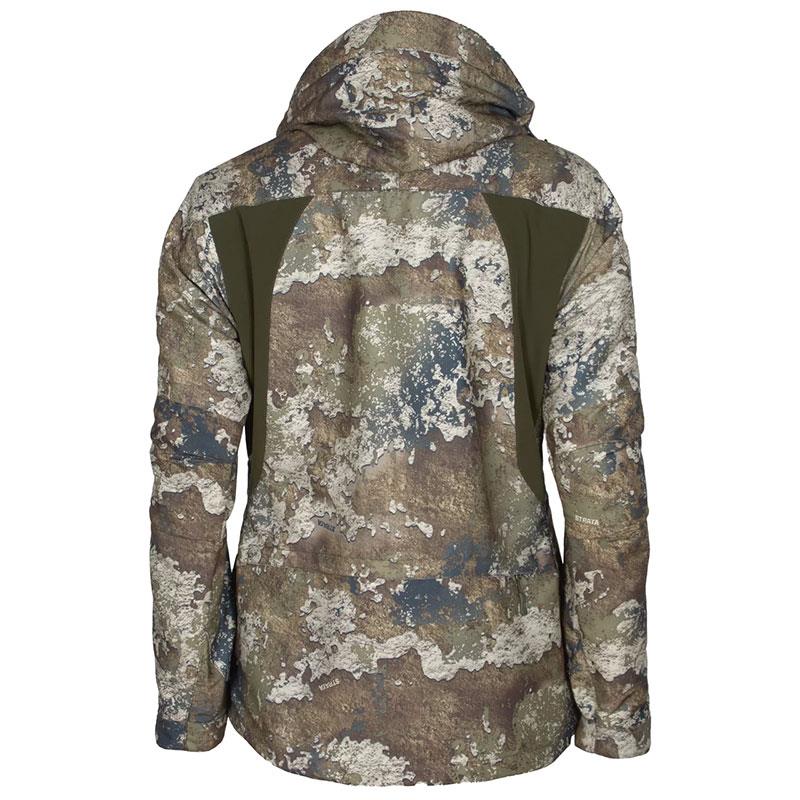 Praktische Jagdjacke im offiziellen True Timber®-Tarnmuster. Sie hat wasserdichte Nähte und ist mit der wasserabweisenden Ausrüstung BIONIC-FINISH® ECO behandelt, die zusätzliche wasserabweisende Eigenschaften bietet. Sie ist außerdem winddicht, sehr atmungsaktiv und verfügt über Belüftungsreißverschlüsse. Taille und Bündchen sind verstellbar und die Jacke ist mit vierseitig dehnbaren Einsätzen für mehr Bewegungsfreiheit ausgestattet. Die feste Kapuze ist vorne beidseitig verstellbar und hat einen Riemen an der Rückseite. Die Jacke hat drei Vordertaschen, zwei Brusttaschen, eine GPS-Tasche, eine Innentasche, eine Wildtasche und eine kleine Tasche am oberen Ärmel mit integriertem Sicherheitsstreifen. Zweiseitiger Reißverschluss und Druckknöpfe. Sehr sichtbarer oranger Kragen für mehr Sicherheit. Die Jacke hat abnehmbare Träger, sodass sie bei zu großer Wärme wie ein Rucksack über die Schultern gehängt werden kann.