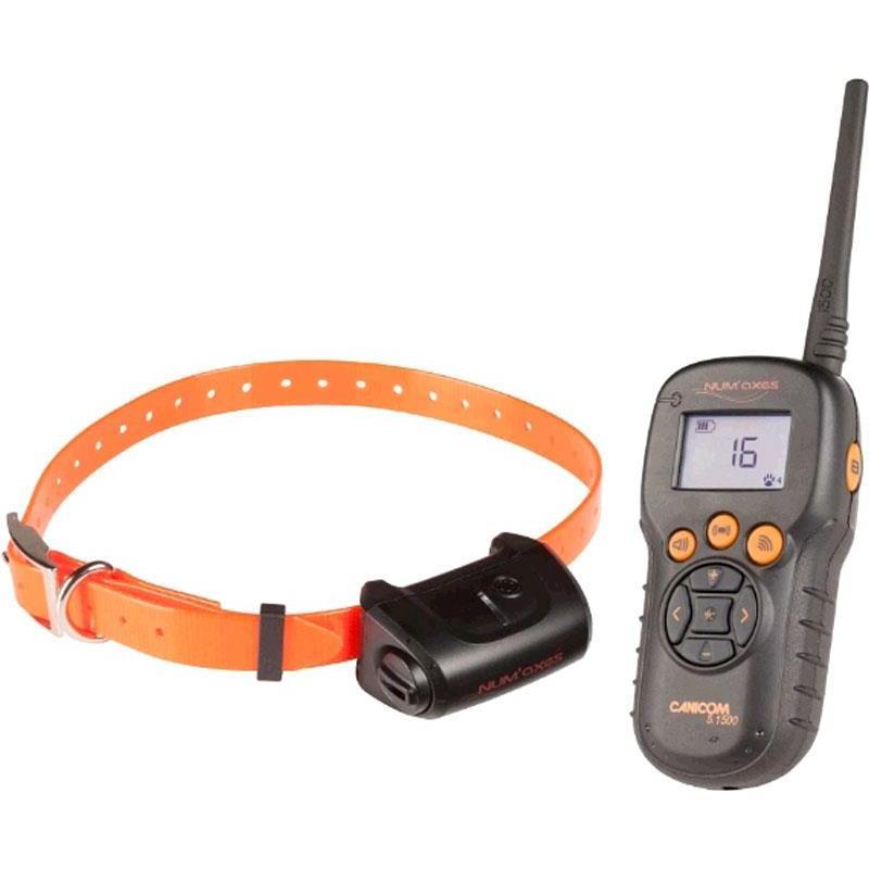 • Ein Halsband CANICOM 5 ausgestattet mit kurzen Elektroden und einem orangefarbenen Band