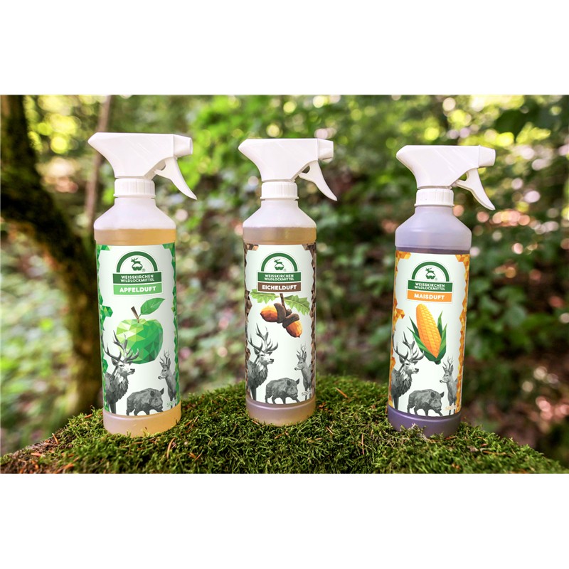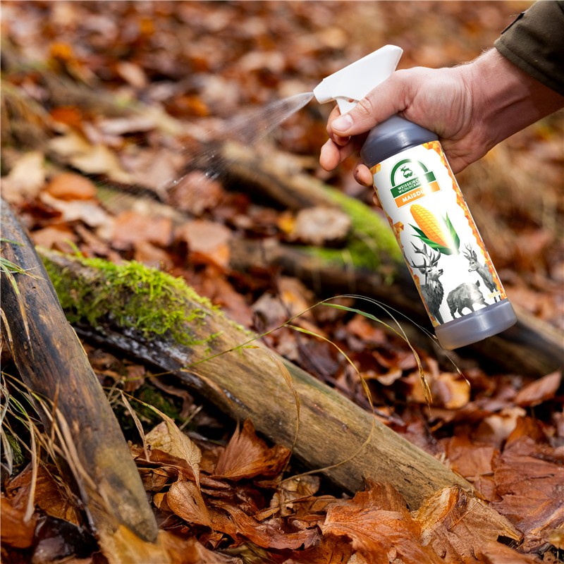 Anwendungshinweise : • Dieses Produkt hat vielfältige Einsatzmöglichkeiten: • Regelmäßig auf einen Baumstamm, auf einen Wurzelstock oder auf den Untergrund rund um Anfütterungsplätze oder Suhlen gesprüht, ermöglicht es, die Tiere stärker an diese strategischen Stellen zu locken. • Regelmäßig in der Nähe der Ansitzplätze gesprüht, lockt es das Großwild an, um die Jagd oder die Abschussmaßnahmen effektiver zu gestalten. • Schließlich, bei Ansitz- oder Anschleichjagden, sprühen Sie dieses Produkt auf Ihre Kleidung, um Ihren Körpergeruch effektiv zu überdecken. • Einfach in der Anwendung mit seiner 500ml-Flasche, die mit einem Spray ausgestattet ist.