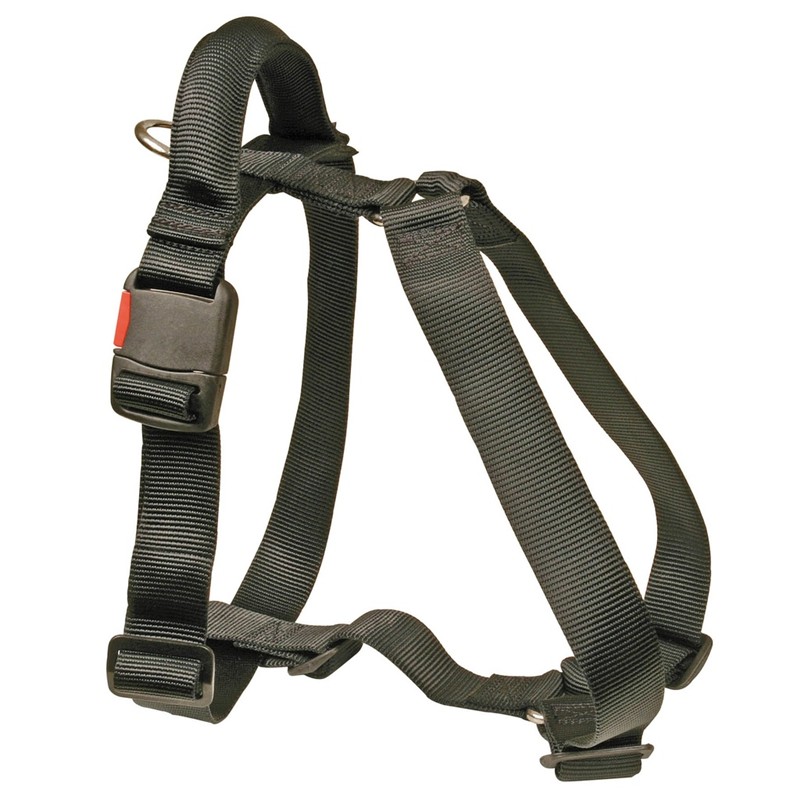 Dieses Geschirr "Grand Confort" ist die Referenzausrüstung für den Hundeführer, der eine vollständige und unmittelbare Kontrolle über sein Tier in unwegsamem Gelände oder bei intensiven Arbeitssituationen verlangt. Seine Konstruktion aus 40 mm hochsichtbares rotes Nylon ist am Brustkorb und am Rücken mit einer dicken, weichen Polsterung unterlegt, die optimalen Schutz vor Hautreizungen gewährleistet. Der Hauptvorteil dieses Modells liegt in seinem integrierten dorsalen Haltegriff, der es ermöglicht, den Hund sofort zu fassen, ihn zu lenken, ihm beim Überwinden eines Hindernisses zu helfen oder ihn beim Platzieren am Posten in direktem Kontakt zu halten.