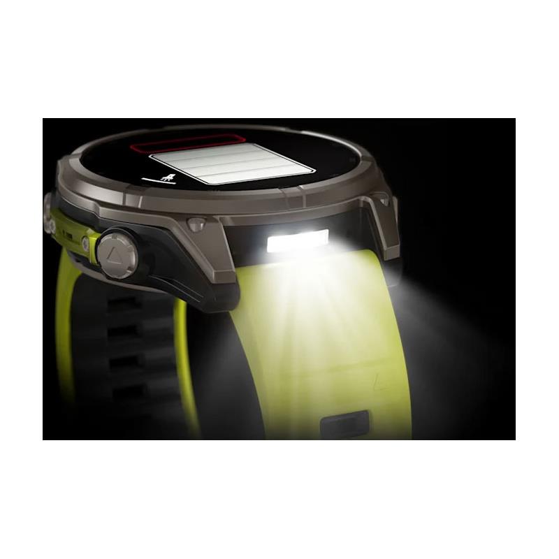 Für Spitzensportler und Abenteurer, die ihre Grenzen erweitern wollen, ist diese hochwertige GPS-Multisport-Smartwatch darauf ausgelegt, außergewöhnliche Leistung zu bieten und passt an die größten Handgelenke, mit fortschrittlichen Krafttrainingsfunktionen, Tauchfunktionen, integriertem Lautsprecher und Mikrofon für Sprachbefehle, einer integrierten LED-Taschenlampe und einer Akkulaufzeit von bis zu 48 Tagen dank des Power Sapphire™-Solarglases1.