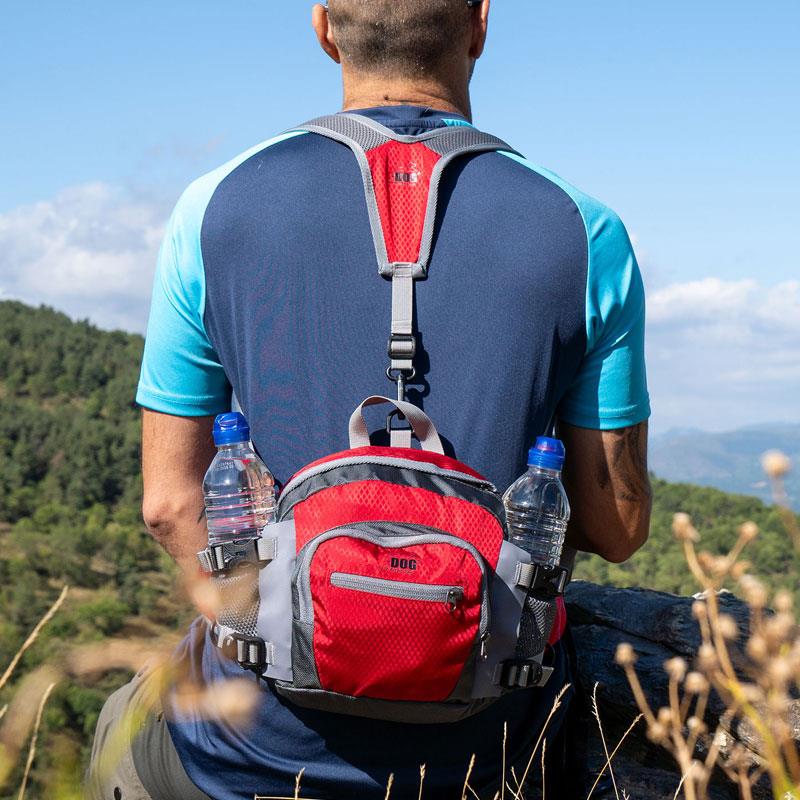 • Multifunktionaler Rucksackgürtel : abnehmbare Zugschlaufe für die Verwendung mit oder ohne Ihren Hund. • Mehrere Staufächer für die Wanderung.