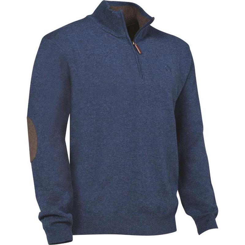 Dünner Pullover, Stehkragen mit Reißverschluss, 50% Wolle, 50% Baumwolle, Ellenbogenbesatz in kontrastierender Farbe