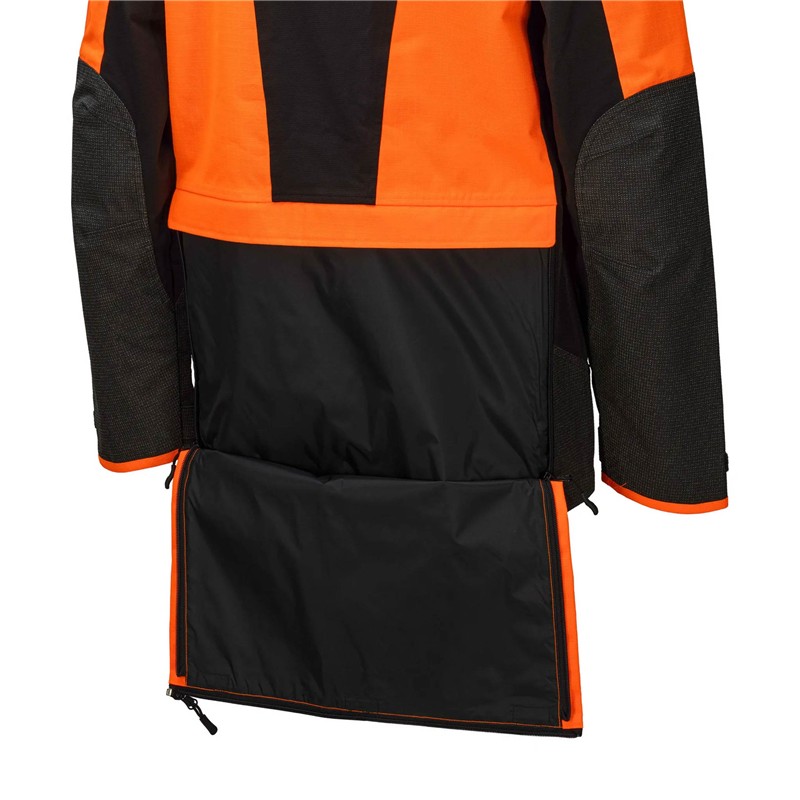 Abnehmbare Kapuze. Membran Prevent Extrem 20K/20K. Belüftungen unter den Achseln. Beidseitig zugängliche Funkgerätetasche. Wasserdichter Reißverschluss. Seitliche und rückwärtige Stretch-Einsätze. Tasche zum Händewärmen. Schlaufe für Funkgerät. Amortex-Verstärkungen. Nackenschutz.