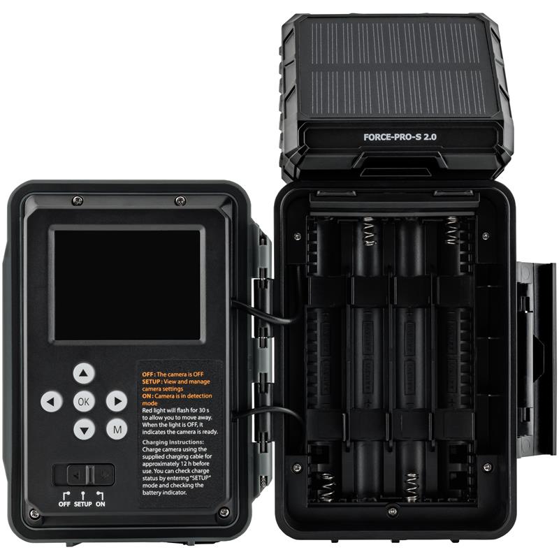 Die FORCE-PRO-S 2.0 von SPYPOINT verfügt über ein Solarpanel, das eine interne Lithium-Batterie auflädt und die Kamera über Monate mit Strom versorgt. Mit ihrer Fähigkeit, 4K-Videos in kristallklarer Qualität aufzunehmen, ermöglicht die FORCE-PRO-S 2.0 das Herunterladen und Betrachten von Geschehen aus dem Wald mit unvergleichlichen Details. Das neue Farb-LCD zur Anzeige von Fotos und Videos ermöglicht nicht nur eine einfache Konfiguration und Einstellung der Parameter, sondern erleichtert auch mehr denn je die Überprüfung und Verwaltung der direkt auf Ihrer Kamera erfassten Inhalte.