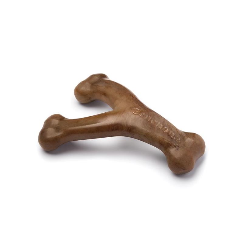 Die Kauknochen wishbone haben eine speziell entwickelte Form, die es dem Hund ermöglicht, sie fest zwischen seinen beiden Vorderpfoten zu halten. Widerstandsfähig gegen intensives Kauen sind die Kauknochen wishbone in zwei Geschmacksrichtungen erhältlich: Huhn und Speck. Für Hunde sehr geruchsintensiv dank echter Speck- oder Hühnerstücke, die in das Material eingearbeitet sind, bleibt der Knochen für den menschlichen Geruchssinn jedoch geruchlos. Bei der ersten Verwendung wird empfohlen, den Knochen auf einer rauen Oberfläche zu reiben, um die Aromen freizusetzen.