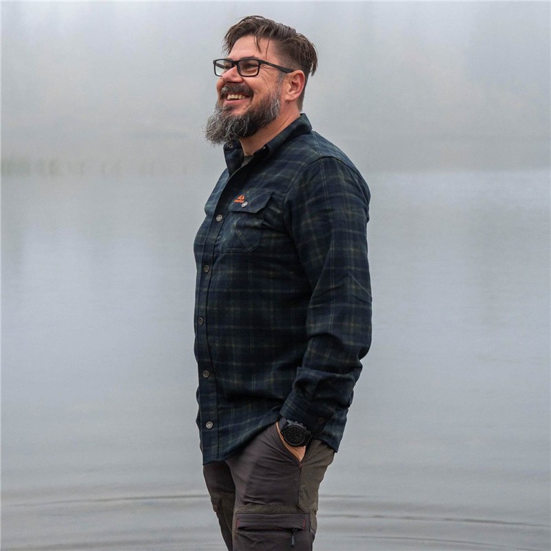 Hemd mit langen Ärmeln aus neuem technischem Polyesterflanell mit Netzfutter. Leicht und schnell trocknend, doppelte Brusttasche und Knopfkragen. Dieses Hemd kann mit all unseren Kleidungsstücken mit atmungsaktiver Membran verwendet werden.