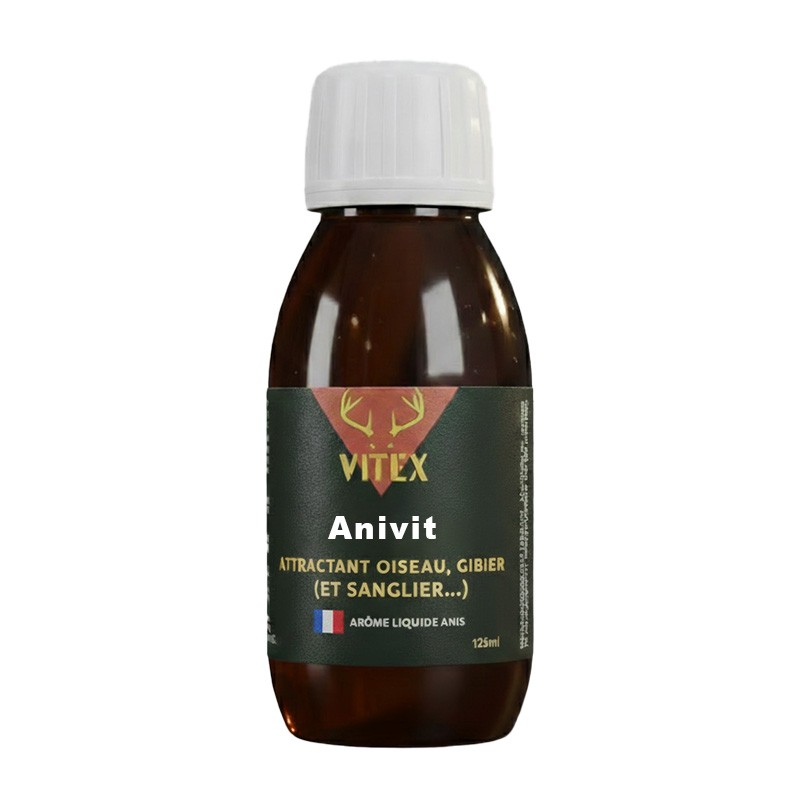 Wenn Sie ein Aroma suchen, das sowohl Fasane und Rebhühner als auch Wildschweine gleichermaßen anspricht, ist der ANIVIT von VITEX die Zwei-in-eins-Lösung. Dieses flüssige ANIS-Aroma, hochkonzentriert, abgefüllt in einer 125 ml-Flasche, ist ein starker Lockstoff, der dabei hilft, das Federwild zu binden und gleichzeitig Wildschweine anzulocken.