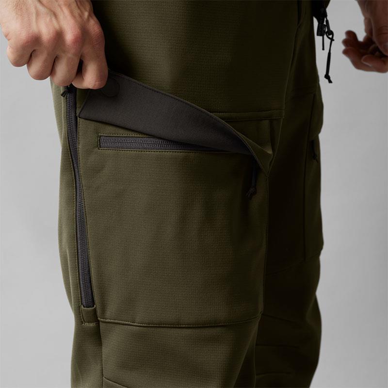 Die Hose Deer Stalker Light ist aus ArcStretch gefertigt, einem äußerst geräuscharmen, geschmeidigen, dehnbaren und schnell trocknenden Gewebe, das sich beim Anschleichen als sehr komfortabel erweisen wird. Diese Hose bietet außerdem eine Fülle sehr praktischer Funktionen, die sich bei Ihren Jagden als wertvoll erweisen werden. An den Außenseiten der Oberschenkel befinden sich lange, mit Mesh gefütterte Belüftungsreißverschlüsse, die Sie öffnen können, wenn Ihnen warm ist, ohne sich um Insekten oder Blätter sorgen zu müssen, die eindringen könnten. Sie verfügt über zwei große, mit Reißverschluss ausgestattete Cargo-Taschen, die durch eine Klappe mit geräuschlosem Magnetverschluss geschützt sind. Die rechte Cargo-Tasche enthält einen Patronenhalter für vier Gewehrpatronen und die linke eine kleine praktische Tasche, in die Sie Ihr Handy stecken können, damit es sicher an seinem Platz bleibt.