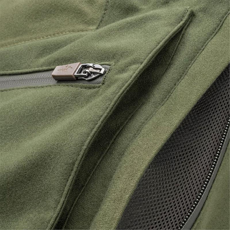 Wind- und wasserdichte Membran. Elastischer Bund. Patronenhalter in der Beintasche. Seitliche Belüftung. Abgedichtete Nähte. Verstellbares Hosenbein. Stiefelhaken.