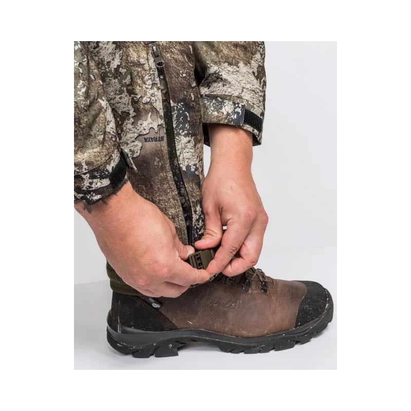 Funktions-Jagdhose im offiziellen True Timber® Tarnmuster mit winddichter und wasserdichter Membran und nahtversiegelten Nähten. Sie ist langlebig und flexibel, mit vorgeformten Knien und einem elastischen Bund mit beidseitiger Dehnbarkeit im Rücken. Sie verfügt über mehrere durchdachte Taschen mit Reißverschlüssen und Patronenhaltern sowie eine kleine Waden­tasche mit integriertem Reflektorband für mehr Sicherheit. Druckknöpfe am Futter ermöglichen das Befestigen von Hosenträgern für einen festeren Sitz. Der Hosenbeinabschluss kann mit Reißverschlüssen, Plastikschnallen und Klettbändern angepasst werden. Die Hose hat seitliche Belüftungsreißverschlüsse, die geöffnet werden können, um die Luftzirkulation zu erhöhen und Schwitzen sowie Feuchtigkeit zu reduzieren.