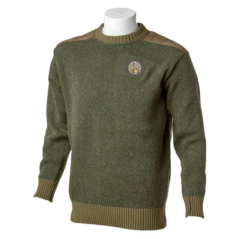 Pullover mit rundem Ausschnitt, Jersey-Strick 30% Wolle. • Kragen und Rippenbündchen an den Ärmeln und an der Taille kontrastiert. • Einsätze aus Wildleder-Imitat in Ton-in-Ton an den Schultern. • Vorgewaschen und geschmeidig gemacht für ein weiches Griffgefühl.