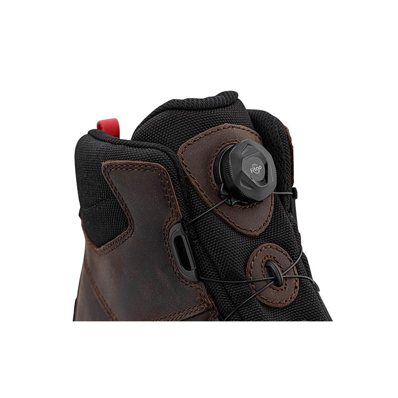 Ein exklusives Spannsystem ersetzt die traditionellen Schnürsenkel : ein spezielles, bruchsicheres Kabel verläuft durch die Ösen und eine automatische Trommel schließt den Schuh oder öffnet ihn je nach Drehrichtung ! Eine enorme Zeitersparnis im Gelände !