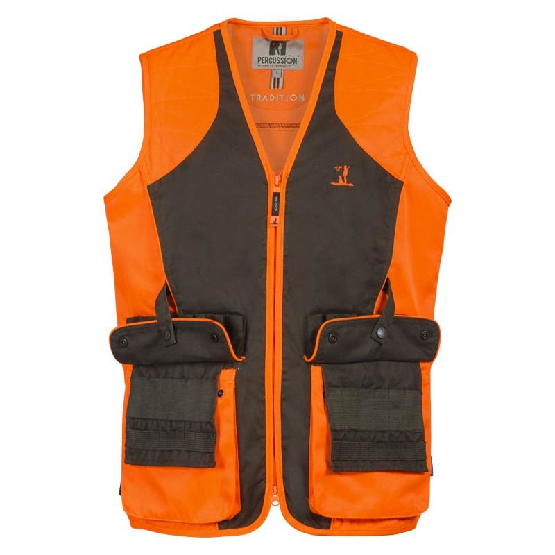 65% Polyester, 35% Baumwolle, behandelte Oberfläche Wasserabweisend. Verstärkungen an den Schultern, 2 Handwärmtaschen, Laschen zur Sicherung der Öffnung, 2 große untere Taschen mit integrierten Patronenträgern (Patronen und Bleie), äußere Patronenträger 16 Röhren, 2 Innentaschen, davon eine Tasche für Mobiltelefon, Tragering für Wild, Wildtasche am Rücken.