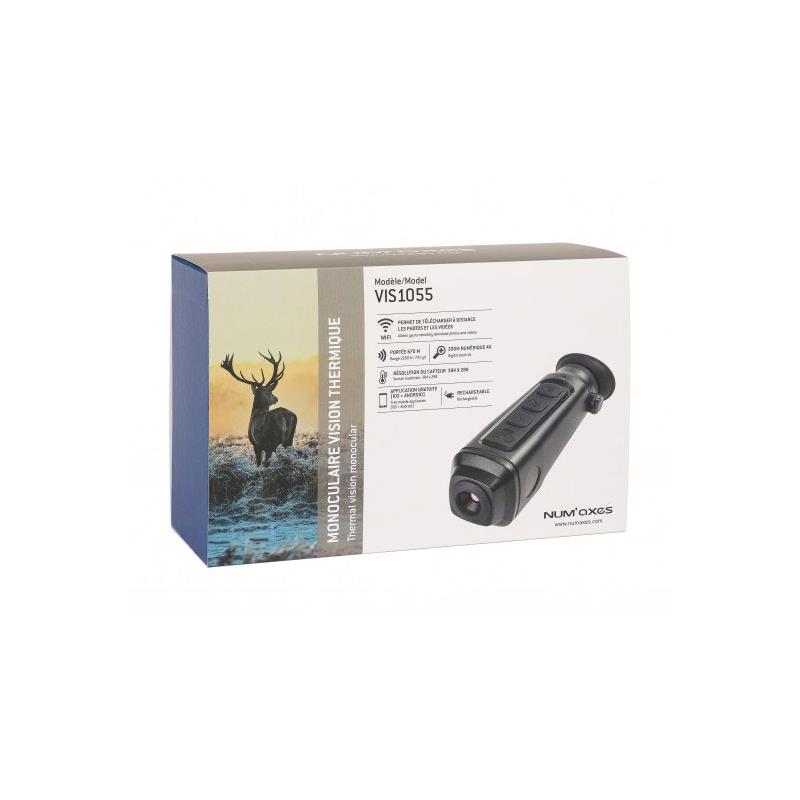 Eigenschaften : • Kompakt und leicht zu transportieren • Nur 331 g • Thermischer Sensor : 384 x 288 • Spektralbereich : 8-14 µm • Sichtfeld : 24.9° x 18.7° • Maximale Erkennungsreichweite : 670 m • Wiederaufladbar • Interner Speicher : 28.8 Go • Möglichkeit, Fotos und Videos über eine kostenlose App aufzunehmen. • Eigenschaften des Nachtsicht-Monokulars VIS1055 • Digitalzoom : 4X • Erkennungsdistanz : 670 m • Thermischer Sensor : 384 x 288 • Bildfrequenz : 50 Hz • Sichtfeld : 24.9° x 18.7° • Brennweite : 15 mm • LCD-Bildschirm : 720*540 • Aufnahme von Fotos und Videos per App + interner Speicher • Betriebstemperatur : -20°C +50°C • Lagertemperatur : -40°C +60°C • Zuverlässig und effizient • Garantie : 2 Jahre • Wasserdichtigkeit : IP66 • Ergonomie des Nachtsicht-Monokulars VIS1055 • Gewicht : 331 g • Abmessungen : 60 x 62 x 185 mm • Wiederaufladbar