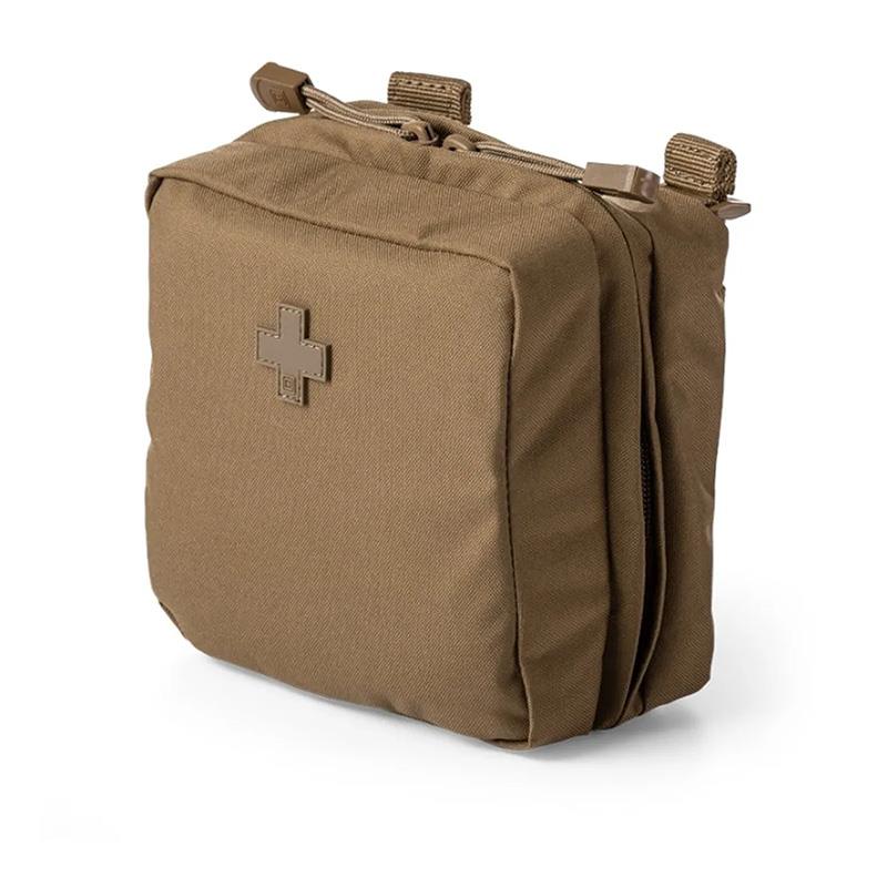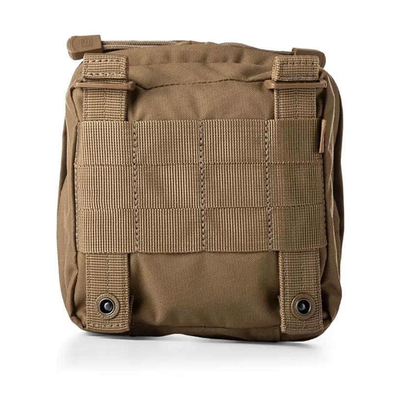 Medizinische Tasche 6" x 6" zum Befestigen an der Ausrüstung (Taktikweste, Oberschenkelplatten usw.) dank der beiden MOLLE-Befestigungen. Die Fächer sind aus Mesh, um den Inhalt schnell zu sehen.