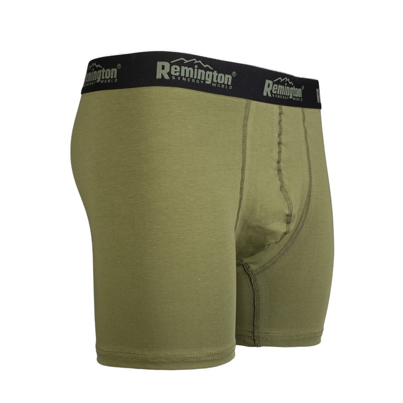 Das Pack mit Herrenboxershorts von Remington in grün meliert umfasst drei Teile mit elastischem Bund, gefertigt aus stretchiger Baumwolle.
