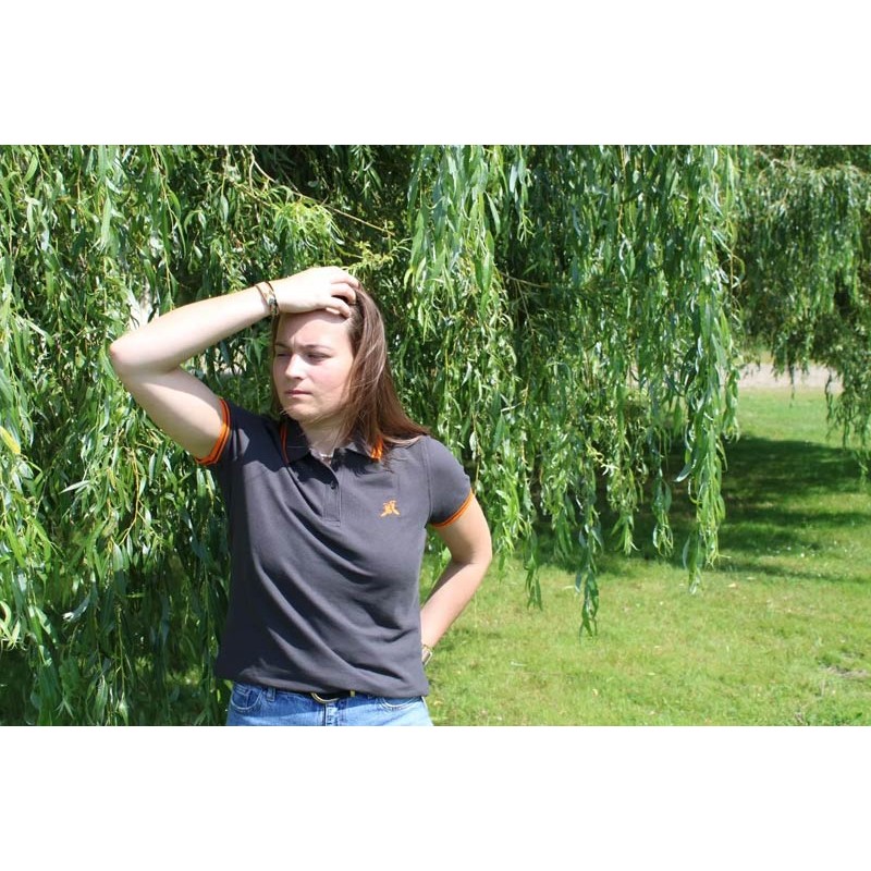 Polo Kurzarm Damen Le Pairon Bécassier Logo Orange - Anthrazit