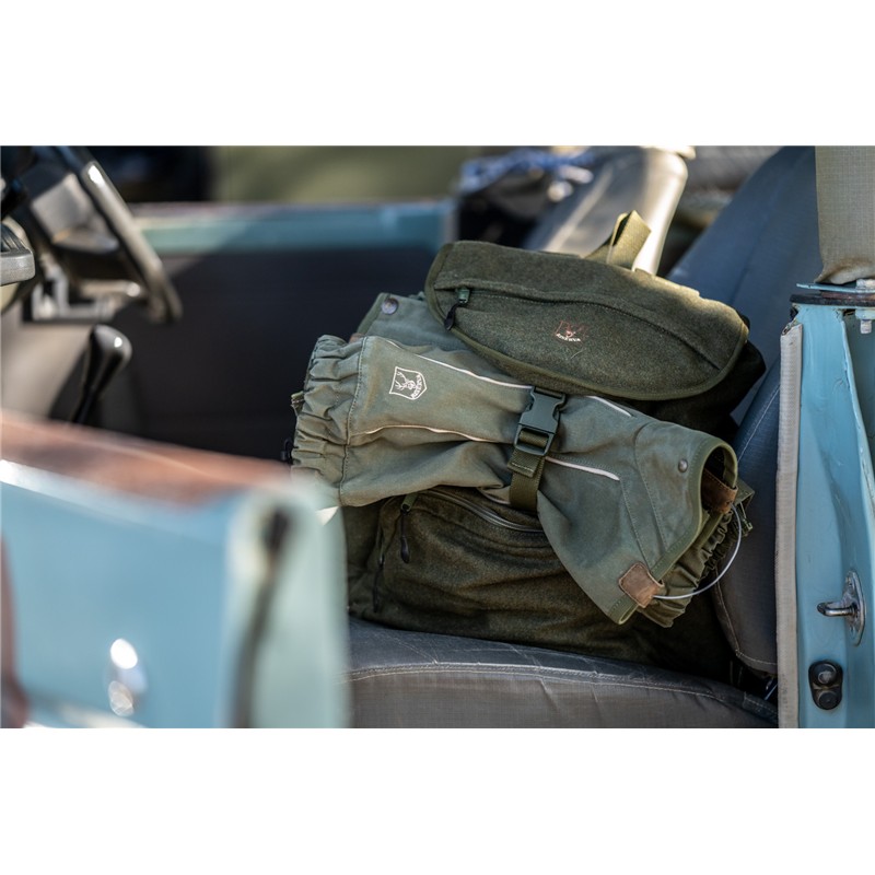 Kleiner, leichter und leiser Rucksack aus Loden und Lederdetails, innen mit Harz beschichtet, ausgestattet mit:
