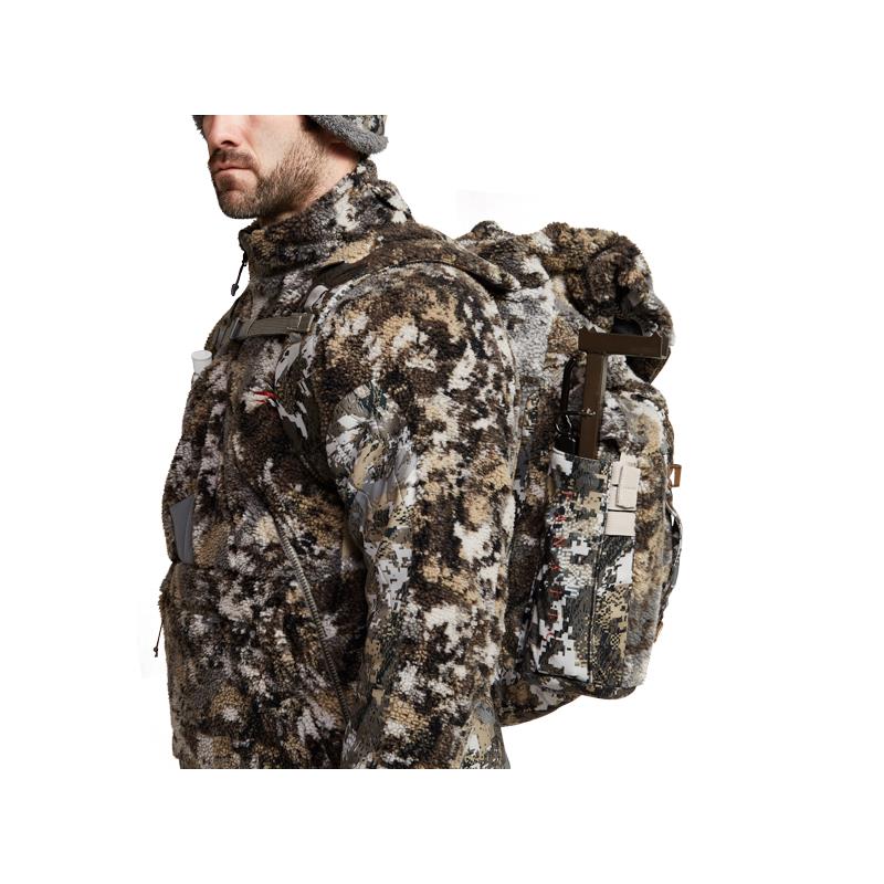 Eigenschaften : • Hauptfach : 26 L oder 1586 CI • Oberdeckel : 6 L oder 31 CI • Große Seitentasche : 2 L oder 122 CI • 2 kleine Seitentaschen : 1,5 L oder 92 CI • Gesamtvolumen : 35,5 L oder 2166,34 CI • Gewicht : 41,1 oz • Science of Sound : Das neue Fanatic-System ermöglicht es einem Jäger, sich mit mehr Vertrauen zu bewegen, indem es die hörbare Annäherungsdistanz halbiert. • Silent Secure-Verschlüsse : beseitigen laute, lose Schlaufen. • Flügelartige Kompressionsriemen für Waffe und Jacke mit Silent Secure-Haken : ermöglichen es Ihnen, einen Bogen, ein Gewehr, eine Jacke oder Rasselgeweihe außen am Rucksack zu transportieren. • Extrem geräuscharme YKK® Vislon®-Reißverschlüsse : so konzipiert, dass Ihr Rucksack Ihre Tarnung nicht aufs Spiel setzt. • Spezielle Seitentasche für Säge/Bogenaufhänger : für schnellen Zugriff von außen am Rucksack, nachdem Sie auf einen Baumsitz geklettert sind. • Einziehbarer Stabilisierungsgurt für Bogen/Waffe : hält das Gewicht ausbalanciert und sichert die Ladung während des Transports.