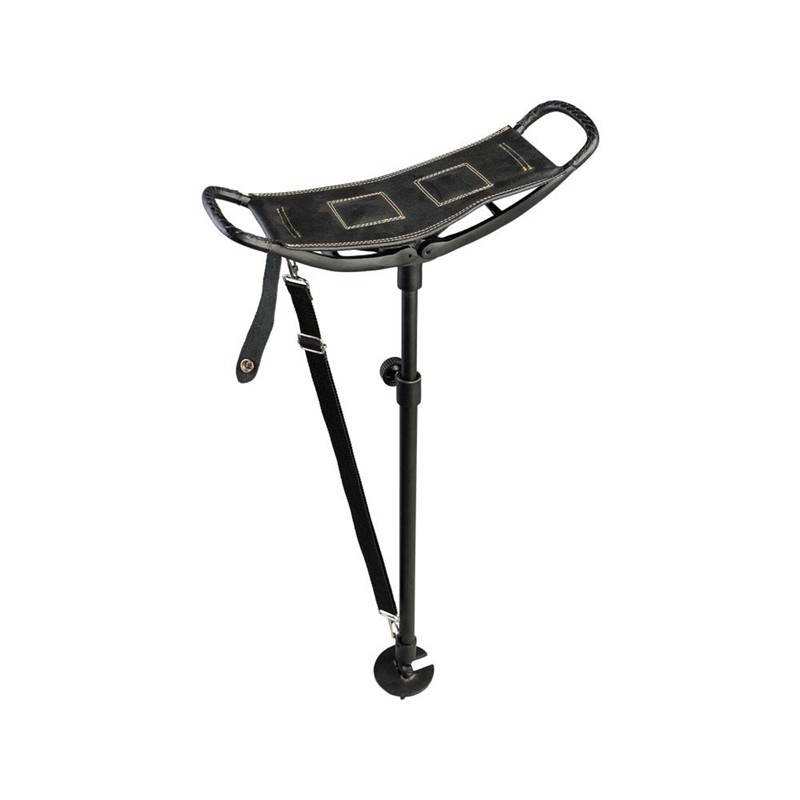 Die große Stärke dieses Modells liegt in seinen runden Metallfußplatten, die an der Spitze jedes Beins befestigt sind. Diese Teller verhindern, dass sich der Sitz in weichem, schlammigem oder sandigem Boden einsenkt, und garantieren eine stets perfekte Stabilität, unabhängig vom Untergrund. Um die Wege zwischen den Treiben zu erleichtern, ist er mit einem verstellbaren Ledertragegurt ausgestattet, mit dem er bequem über der Schulter getragen werden kann. Trotz seiner Robustheit und einer Tragfähigkeit von bis zu 100 kg bleibt dieser Sitz mit einem Gewicht von etwa 2 kg leicht, was ihn zu einem idealen Begleiter für mobile Jäger macht, die eine zuverlässige und traditionelle Ausrüstung suchen.