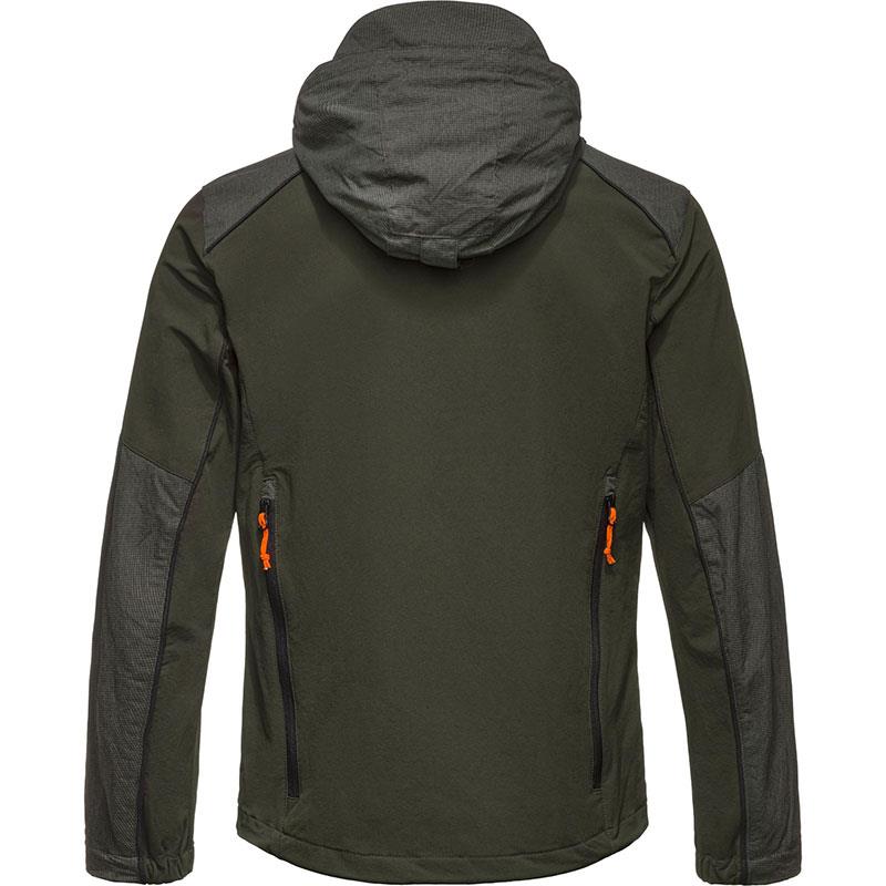 Eigenschaften: • elastischer, winddichter und wasserabweisender Stoff • SKUDO-Verstärkungen • in den Kragen integrierte, wasserdichte Kapuze • Kordelzug am Saum • geräumige Jagdtasche mit doppeltem Zugang und Reißverschlusstaschen