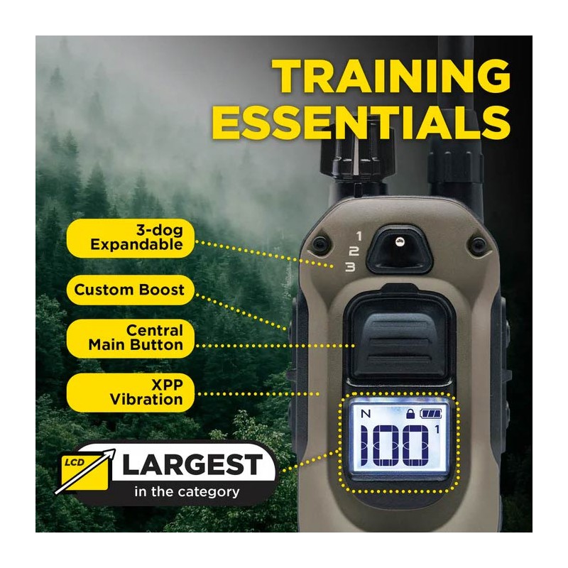 Der ergonomische Sender ist mit einem Drehknopf ausgestattet, mit dem die Stimulation auf 100 stufenlose Niveaus eingestellt werden kann, ohne Leistungssprünge, sodass er sich perfekt an die Sensibilität Ihres Hundes anpasst. Er bietet drei Wirkungsarten: die Hochleistungs-Vibration (HPP) für einen leisen und stressfreien Rückruf sowie die statischen Stimulationen "Nick" (Kurzimpuls) und "Constant" (kontinuierlich). Das Besondere am 1200X ist sein einstellbarer Boost-Knopf, mit dem in Fällen großer Ablenkung oder einer Notsituation sofort ein voreingestelltes höheres Stimulationsniveau angewendet werden kann.