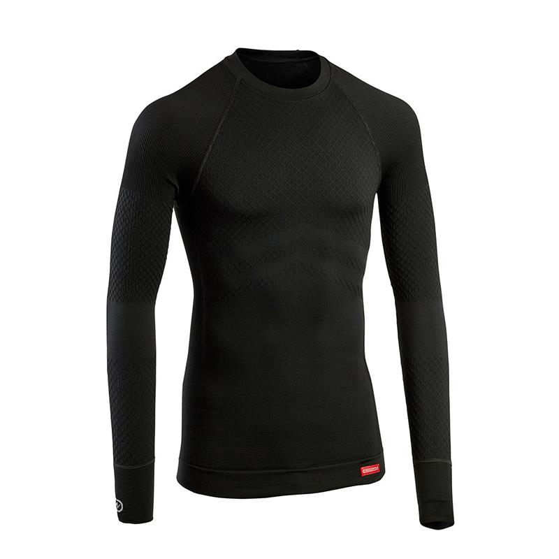 Eigenschaften : • Die Armausschnitte sind mit Flachnähten versehen. • Rundhalsausschnitt. • Lange Ärmel. • DamartSport-Aufdruck am Kragen. • Gewebte Thermolactyl-Vignette am Saum. • Länge des Herren-T-Shirts ca. 60 cm. • Hergestellt zu 60% aus recyceltem Polyester. • Das T-Shirt wird körpernah getragen.