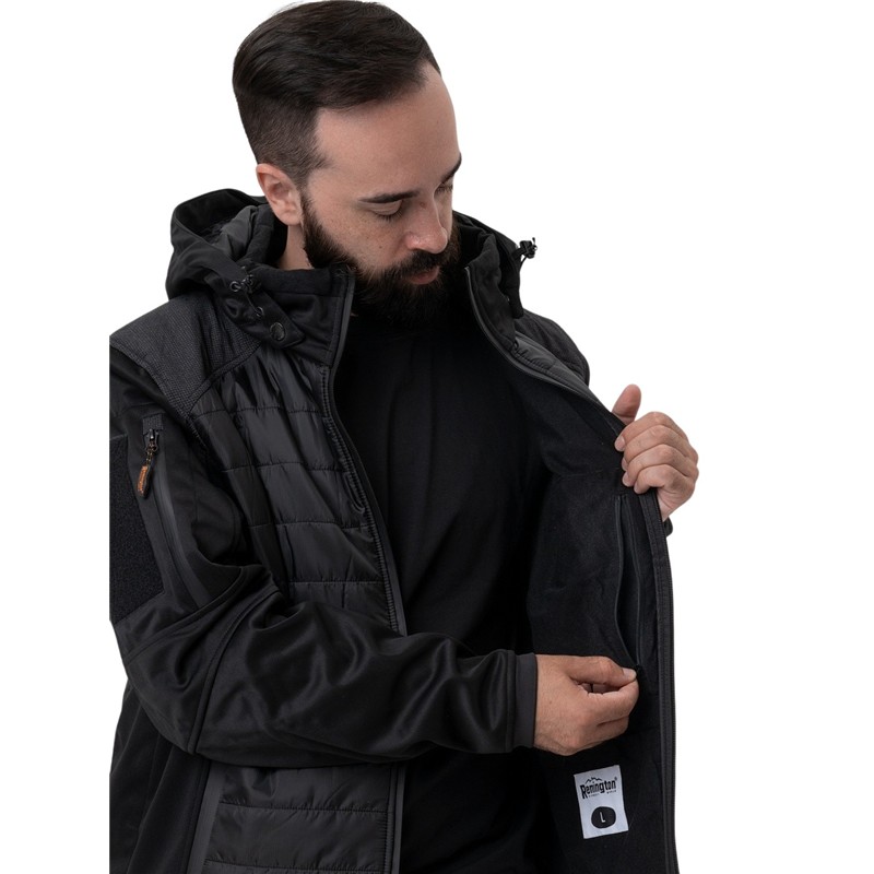 Die Daunenjacke Remington Swat in Schwarz verkörpert die perfekte Verschmelzung von Funktionalität, Komfort und Ästhetik für Outdoor-Enthusiasten. Gefertigt aus einer durchdachten Kombination von Stoffen sorgt diese Jacke für eine bequeme Passform und bietet gleichzeitig eine außergewöhnliche Widerstandsfähigkeit gegen Abnutzung, wodurch eine außerordentliche Langlebigkeit gewährleistet wird. Die ausgewählten Materialien tragen dazu bei, ein vielseitiges Kleidungsstück zu schaffen, das für eine Vielzahl von Aktivitäten im Freien geeignet ist.