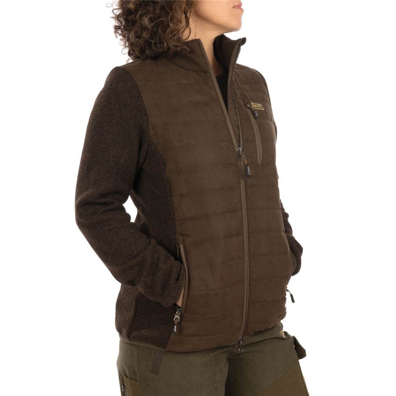 Ihr Design integriert eine klassische Wattierung am Körper, um die Wärme in der Mitte zu halten, während die Fleece-Einsätze an den Seiten und an den Ärmeln eine etwas engere und schmeichelndere Passform bieten. Sie verfügt außerdem über drei praktische, vorne mit Reißverschlüssen versehene Taschen, um all Ihre wichtigen Dinge zu transportieren.