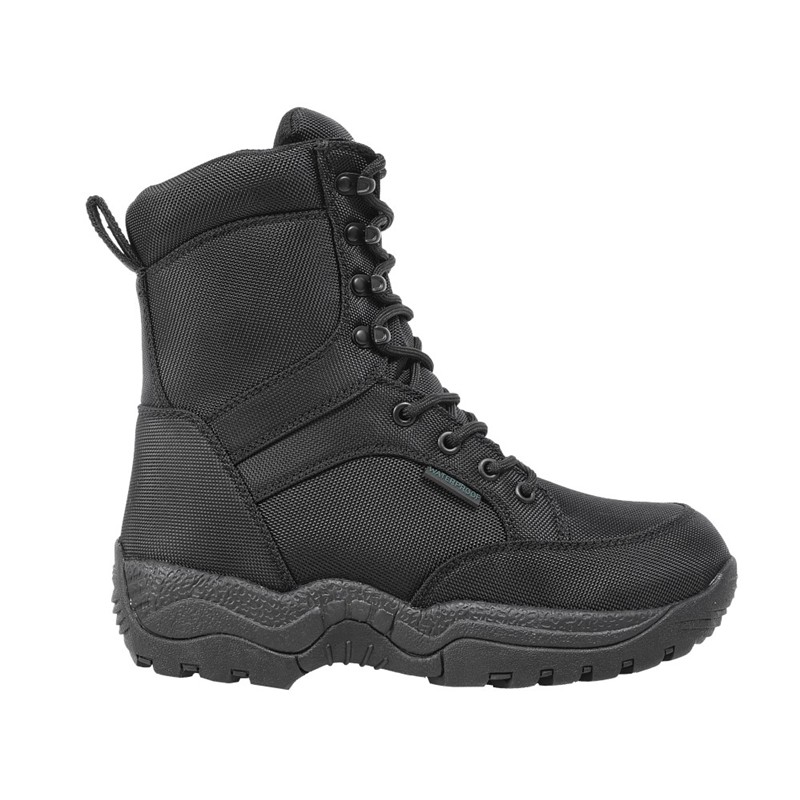 Die Stiefel Speed Strike Schwarz sind vielseitige Schuhe, die für Aktivitäten im Freien und das Stadtleben konzipiert wurden. Hergestellt aus robustem Nylon mit einem wasserdichten Innenfutter bieten sie Komfort und Schutz bei jedem Wetter. Die zweilagige Außensohle aus EVA und Gummi garantiert zuverlässigen Halt unter allen Bedingungen.