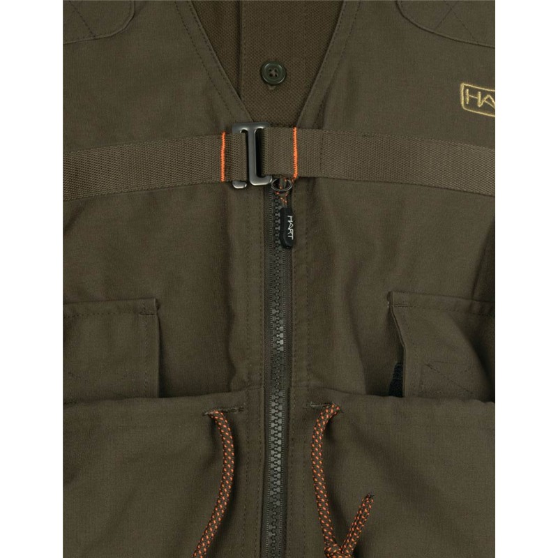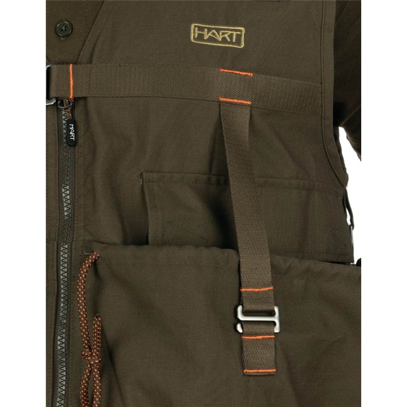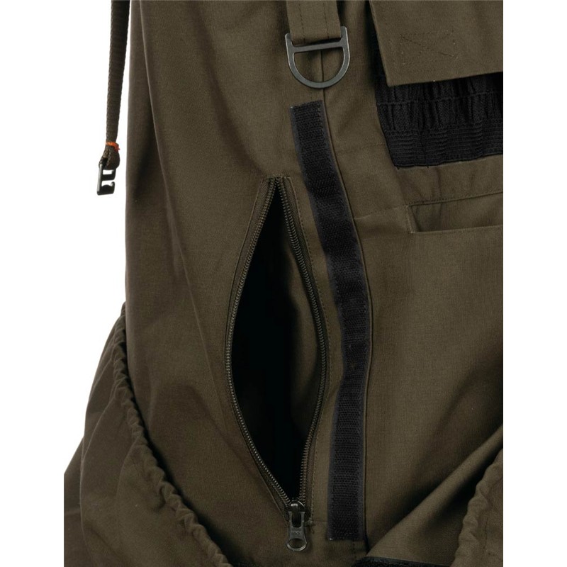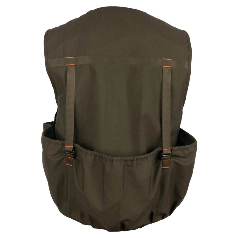 Funktionalität und Komfort für den aktiven Jäger. Hergestellt aus robustem, aber leichtem Polybaumwollgewebe. Entwickelt, um große Bewegungsfreiheit und viel nutzbaren Stauraum zu bieten, verfügt diese Weste über eine großvolumige Kängurutasche rund um den Körper, die an den Seiten mit breiten Klettstreifen ausgestattet ist, um sie in einen vorderen und einen hinteren Ladebereich zu unterteilen. Ideal zum Transport von Wild und/oder verschiedenen Utensilien während des Tages. Diese große Tasche ist mit Schnelllöseschnallen ausgestattet, die das vollständige Öffnen zum Ausleeren oder Waschen erleichtern und dabei helfen, die darin enthaltene Last zu stützen. Sie verfügt außerdem über einen Kordelzug, um sie in der Taille anzupassen. Im Inneren befinden sich vorn 2 offene Cargo-Taschen mit großem Fassungsvermögen sowie ein Reißverschluss-Rucksack an der Rückseite. Vorne befinden sich zwei Reihen äußerer Schlaufen mit Klappe.