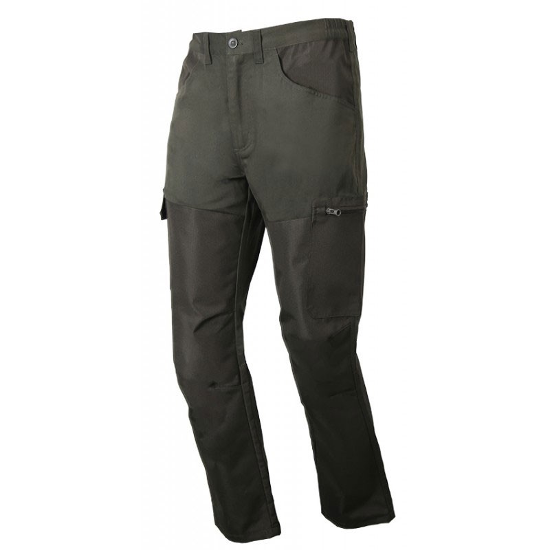 Hose mit Dornen-Schutzbesätzen grün Verstärkung Nano-Ripstop 100% Polyester. Wasserdicht (an den Verstärkungen), leicht, geschmeidig und atmungsaktiv. Ideal für den Saisonbeginn.
