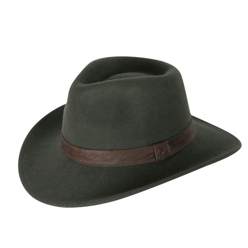 Filzhut aus 100 % wasserabweisender Wolle, mit einem Zierband versehen, verstellbarer Kopfumfang.