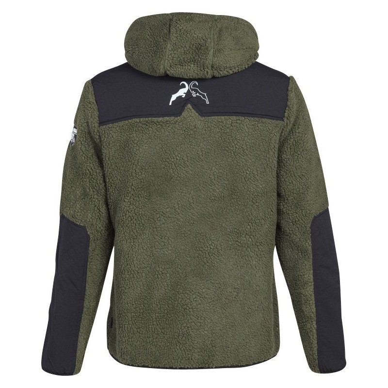 Eigenschaften: • Sehr warme Fleecejacke. • Sherpa-Fleece 480g/m2, innen mit langem Haar kaschiert und außen mit Schafsfell Optik. • Kontrastierende Ellbogenpolster. • Frontreißverschluss mit Doppelzipper. • Eine Brusttasche und zwei untere Reißverschlusstaschen. • Verstellbare Kapuze