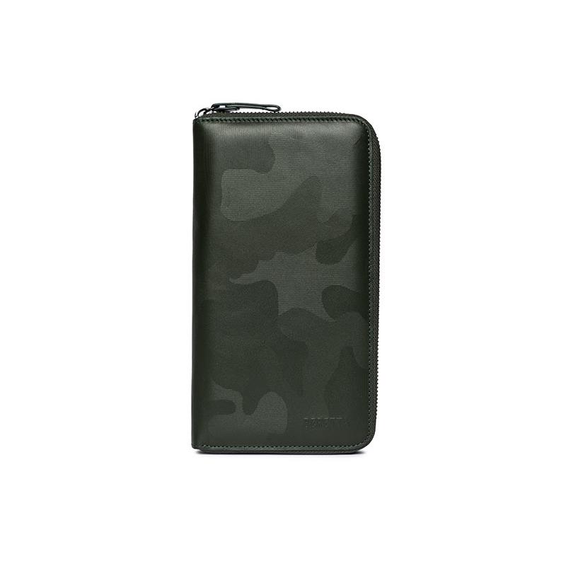 Reiseetui mit Reißverschluss, 100 % Leder und Polyesterfutter. Gekennzeichnet durch ein im 3D-Verfahren auf das Leder gedrucktes Camouflage-Muster.